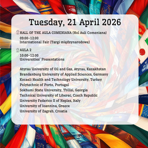Ponadto studenci z Kazachstanu i Gruzji, studiujący obecnie w naszej uczelni, zaprezentują swoje uczelnie macierzyste oraz będą obecni przy stoisku programu Erasmus+.