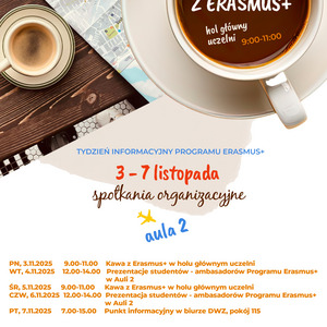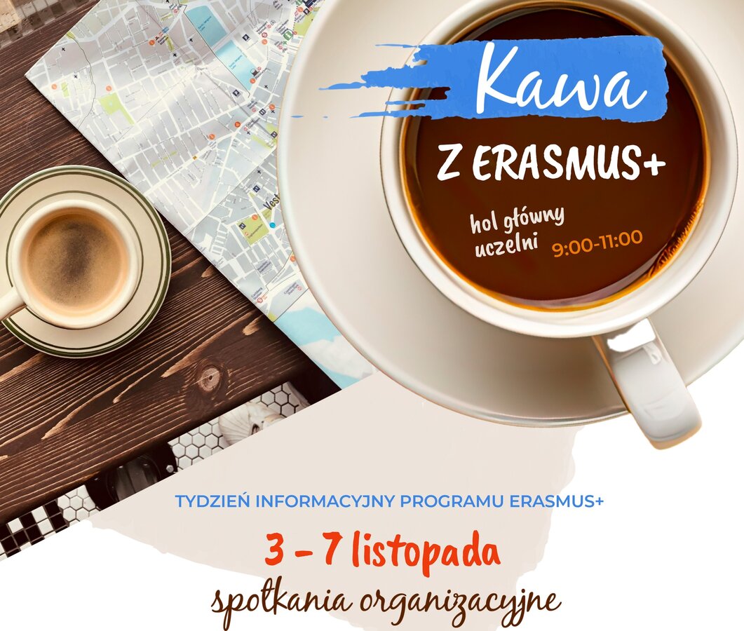 PN, 3.11.2025 9.00-11.00 Kawa z Erasmus+ w holu głównym uczelni