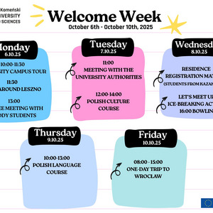 Z tej okazji w dniach 6–10 października 2025 r. odbędzie się Welcome Week, tydzień powitalny, podczas którego nowi studenci będą mieli możliwość m.in.:
