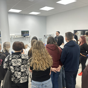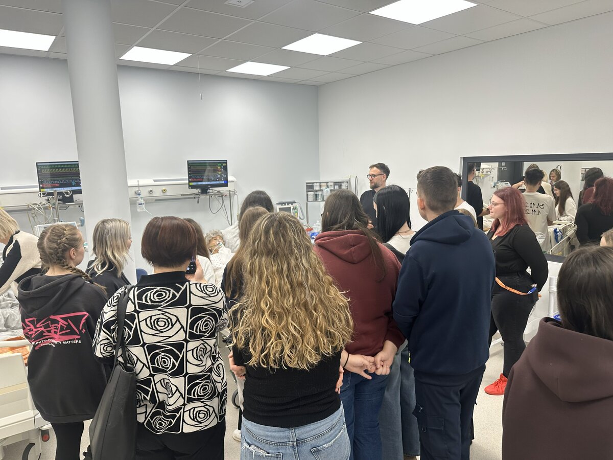 Szczególnie istotnym elementem wizyty było zwiedzanie Monoprofilowego Centrum Symulacji Medycznej, które stanowi jeden z kluczowych filarów kształcenia praktycznego studentów kierunków medycznych. Goście zostali oprowadzeni po nowoczesnych salach symulacyjnych oraz zapoznani z zaawansowanym zapleczem technologicznym, umożliwiającym prowadzenie realistycznych ćwiczeń klinicznych w warunkach zbliżonych do rzeczywistego środowiska pracy zawodowej.