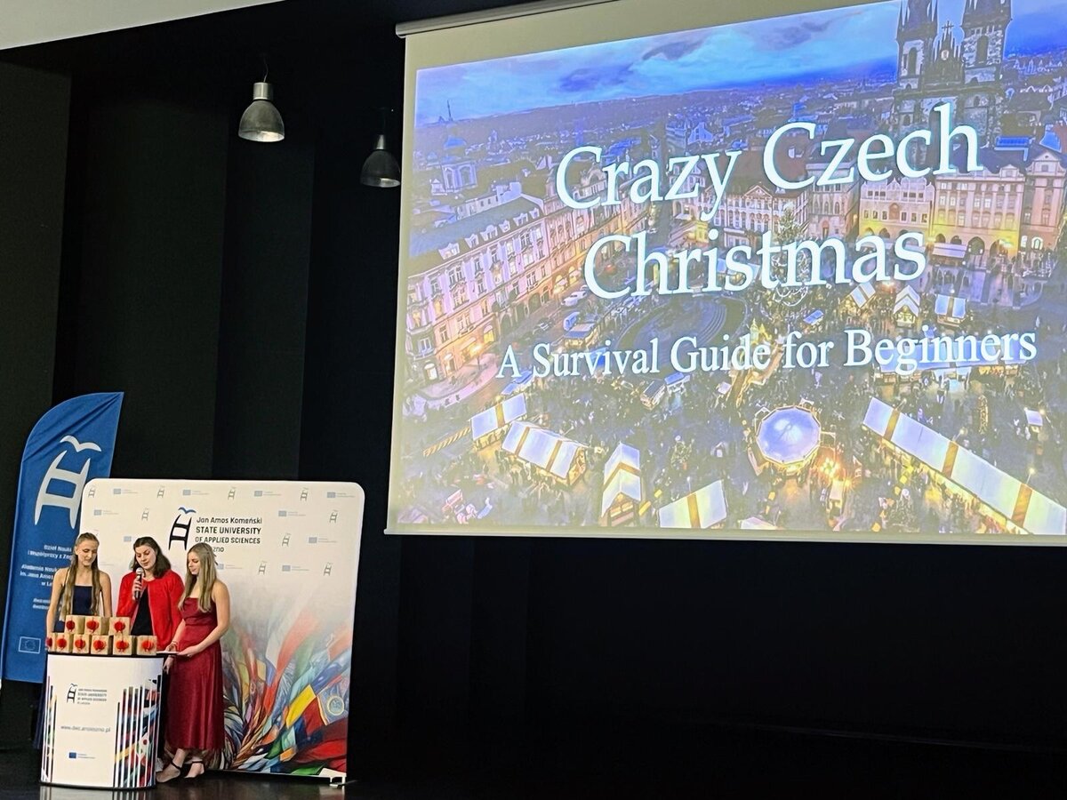 W dalszej części wizyty goście uczestniczyli w świątecznych prezentacjach ERASMUS+ pt. „Christmas Journey: Across Asia, America to Europe”, które odbyły się w Auli Comeniana. Udział w wydarzeniu pozwolił delegacji z Czech zapoznać się z międzynarodowym charakterem uczelni, aktywnością studentów oraz praktyczną realizacją idei umiędzynarodowienia w codziennym życiu akademickim.